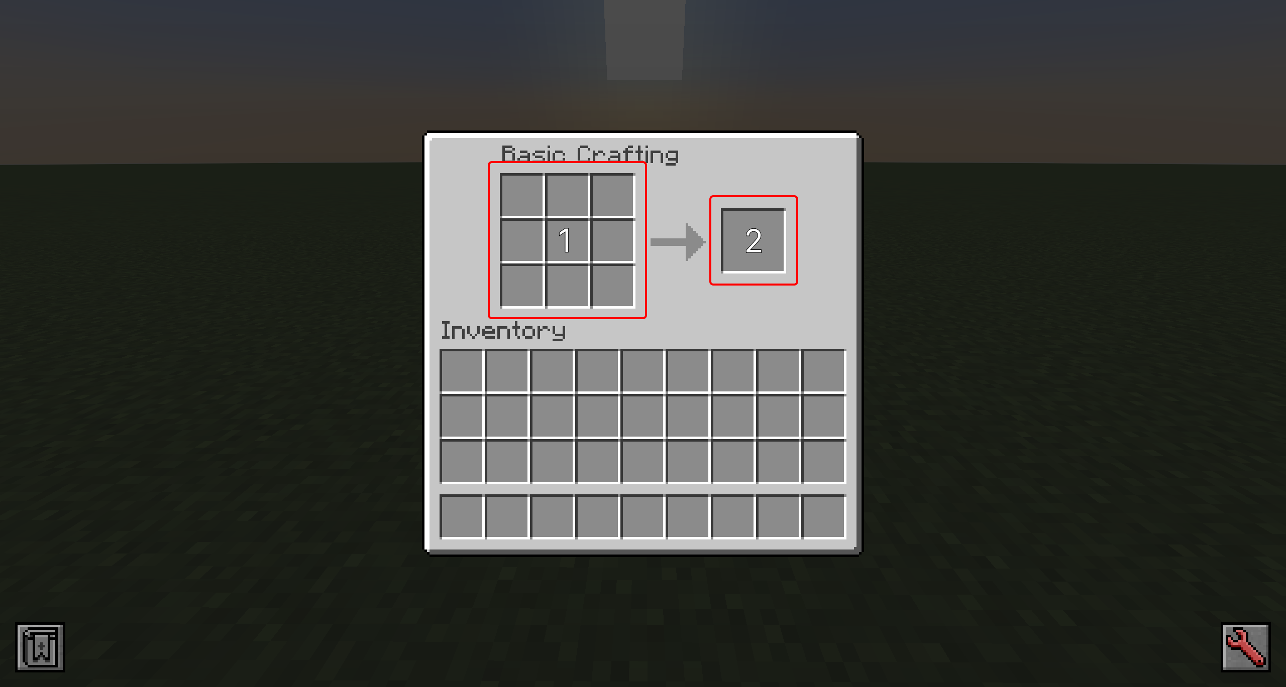 - Crafting Grid Slots: Place the input ingredients here.